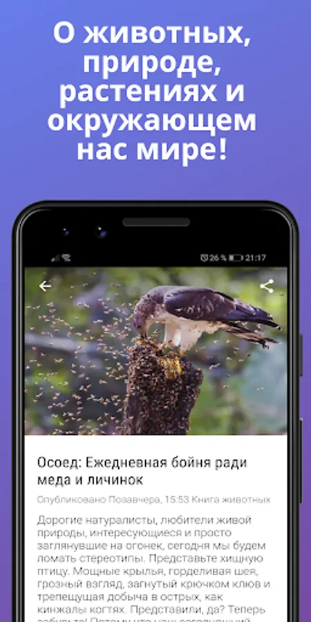 Stories, videos, pictures, interesting facts about our favorite animals and plants, a living planet - the largest community of nature lovers in VK now on your smartphone.