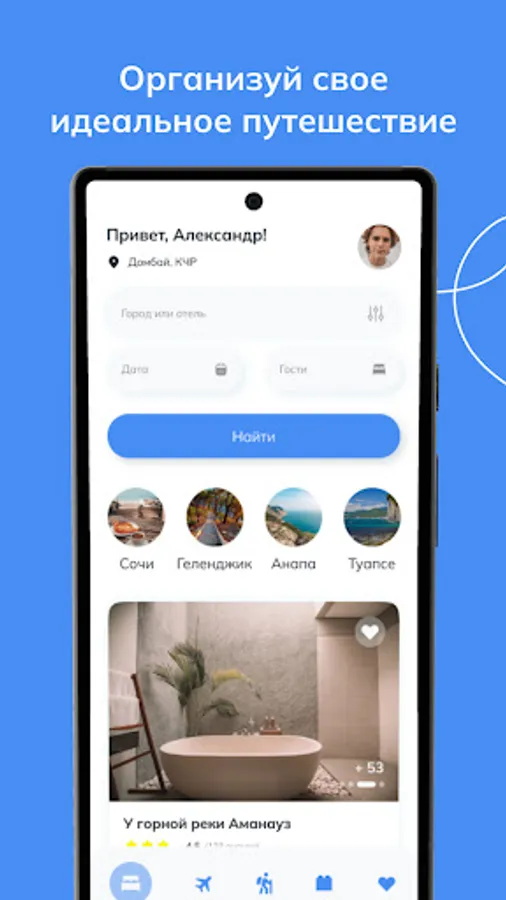 Book a hotel, buy cheap flights, plan a vacation in Russia. All and even more, you will find in Alamat. We have favorable air tickets and hotels, convenient routes and reasonable prices. Thinking where to go to the sea for a week or where to spend the weekend? We will show you where to rest. Download the app and start counting the days until your long-awaited vacation!
