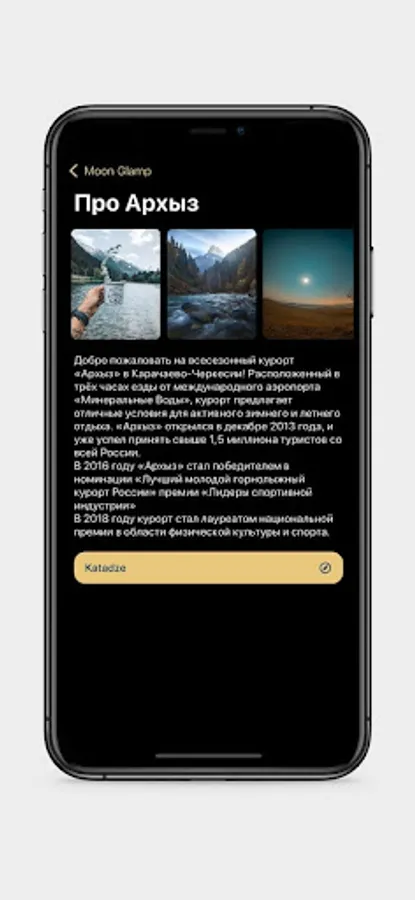 Moon Glamp is an application for comfortable and convenient access to all-season premium glamping services in Arkhyz