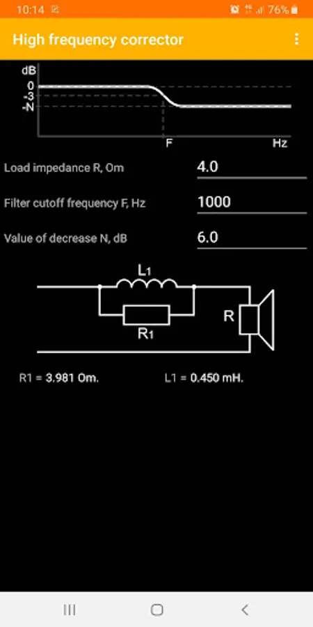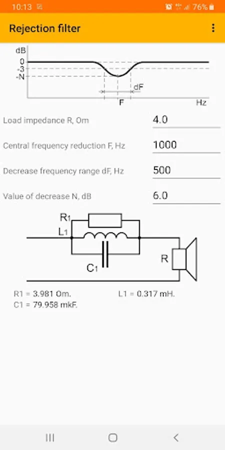 Crossovers for speakers are passive LC-filters of sound frequencies. The application is designed to calculate such filters: low pass filter, high pass filter, bandpass filter, notch filter, as well as correctors of the amplitude-frequency characteristics of the speaker system. Calculation of filters from the first to the fourth orders is provided.