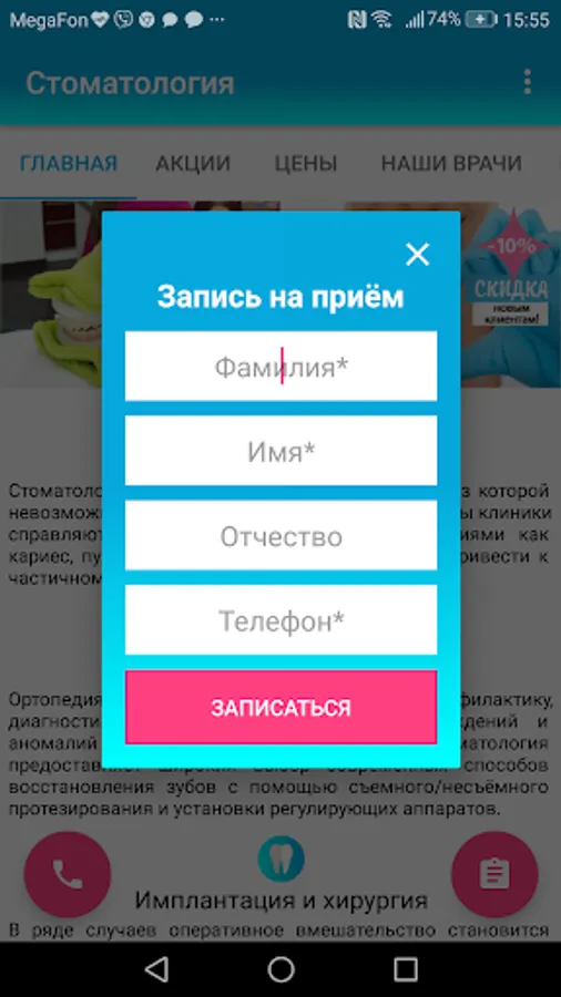 Demo version of the dental clinic application. The application has the following functionality: