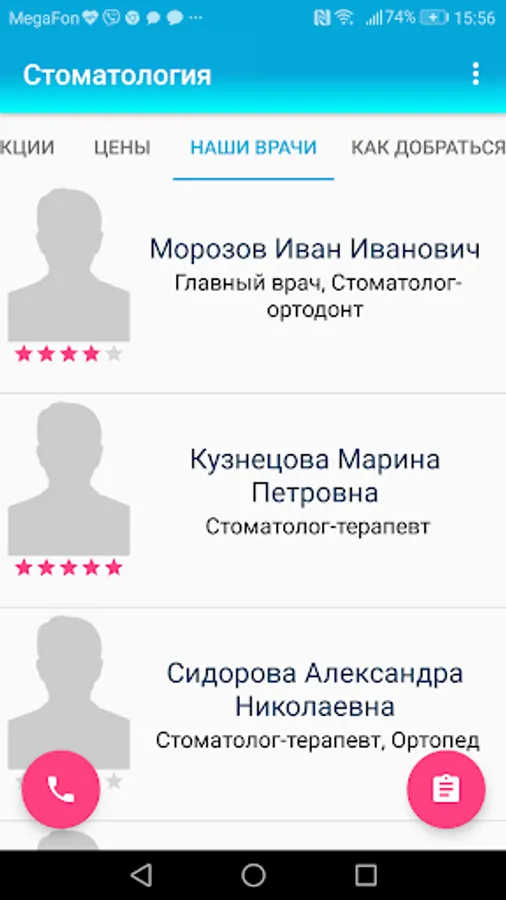 4. List of doctors of the clinic;