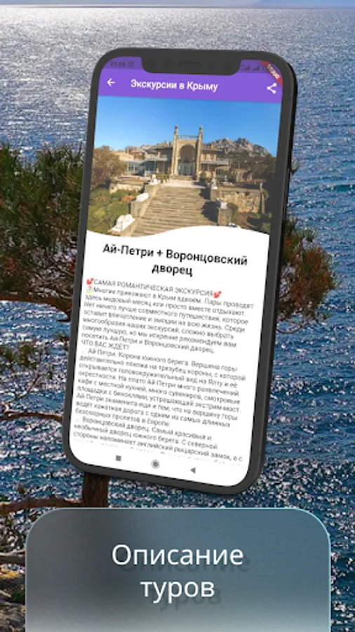 The application contains a large selection of excursion tours along the most beautiful and popular routes: