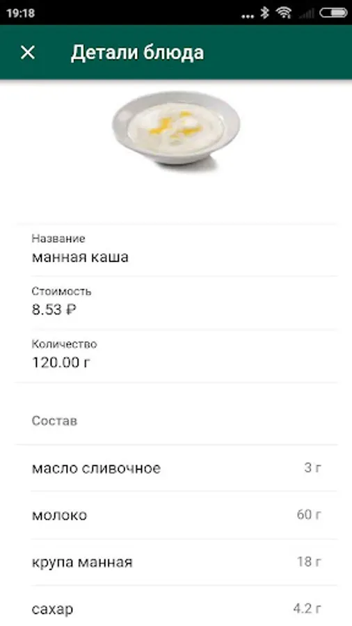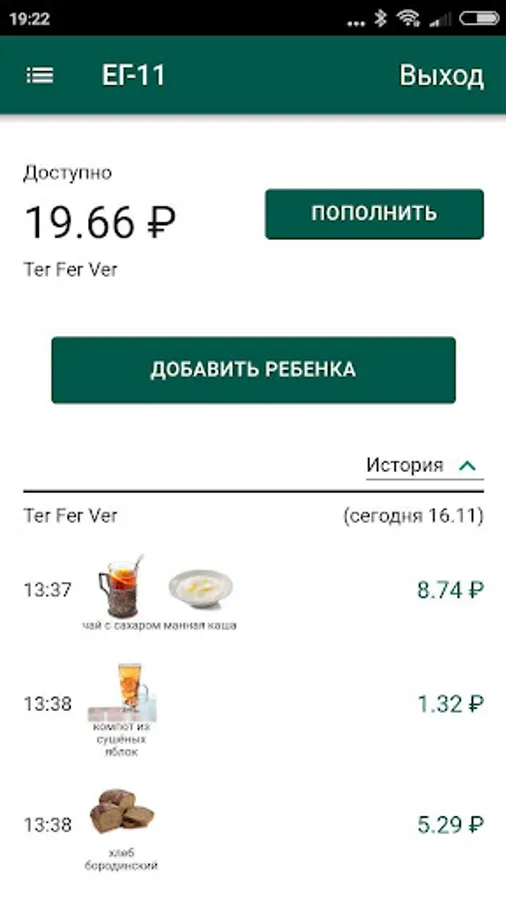 The application as part of the EG11 system allows the organization of the nutrition process of students.