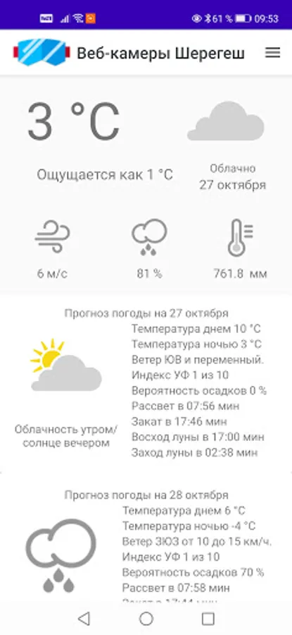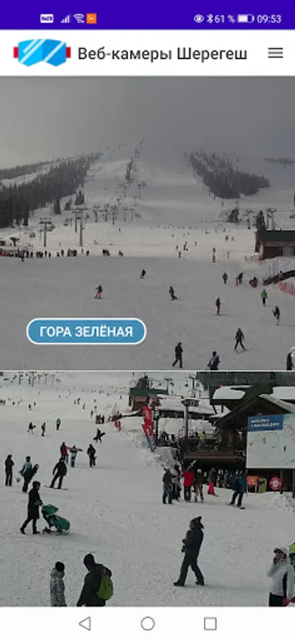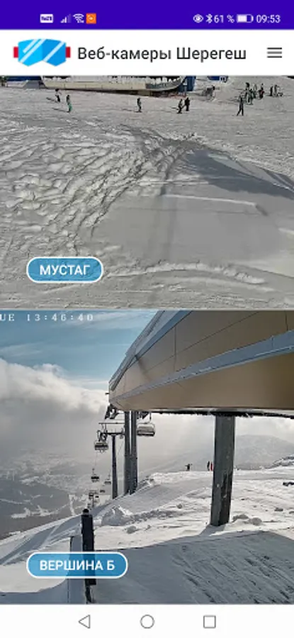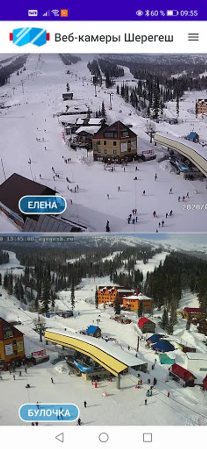 The Egegesh application presents online broadcasts from webcams of the Sheregesh ski resort.