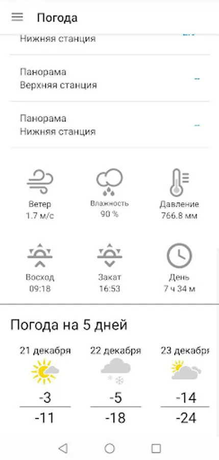 In the application, you can watch webcams in different parts of the mountain, as well as the weather at the resort.