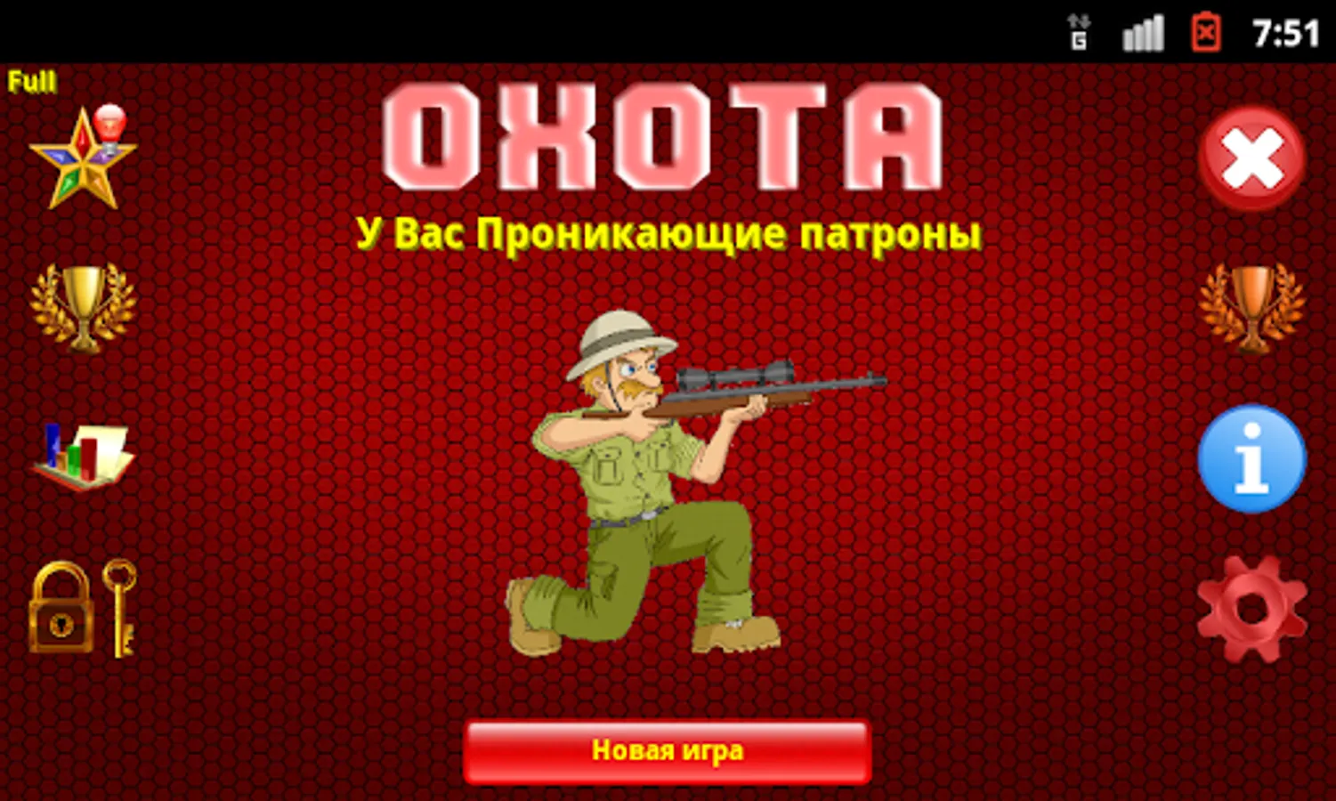 You need to score as many points as possible by shooting at everything that moves. Initially, your score is 1000 points. One point is deducted for each shot, and a certain number of points is awarded for each target hit. After earning 1150 points, you get Teflon cartridges, 1300 and 1450 - penetrating and super cartridges, respectively. The better the cartridges, the fewer shots are required to hit targets. Having earned 1600 points or more, you can get into the world champion table.
