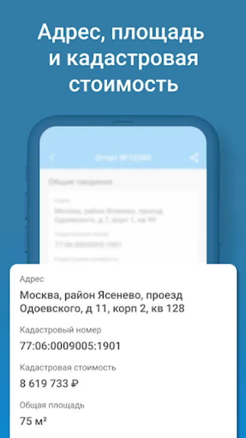 The application is not an official website of the Federal Service for State Registration of Cadastre and Cartography (Rosreestr). We provide services for the provision of reports containing up-to-date information about real estate registered and registered with the Rosreestr Department.
