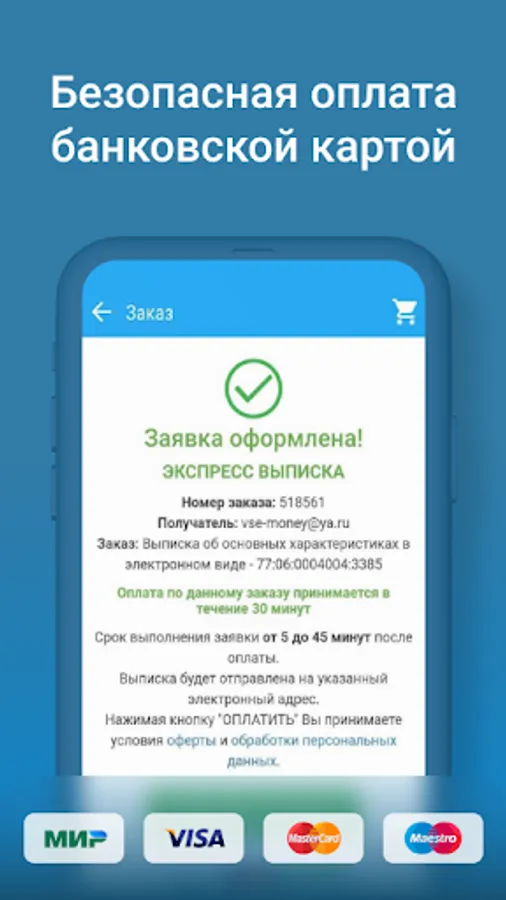 It takes several hours to receive the EGRN report. Keep in mind that the application sends a request to Rosreestr. If the server is overloaded at this point, the checkout will take longer than usual. Don't panic, we will definitely process your request.