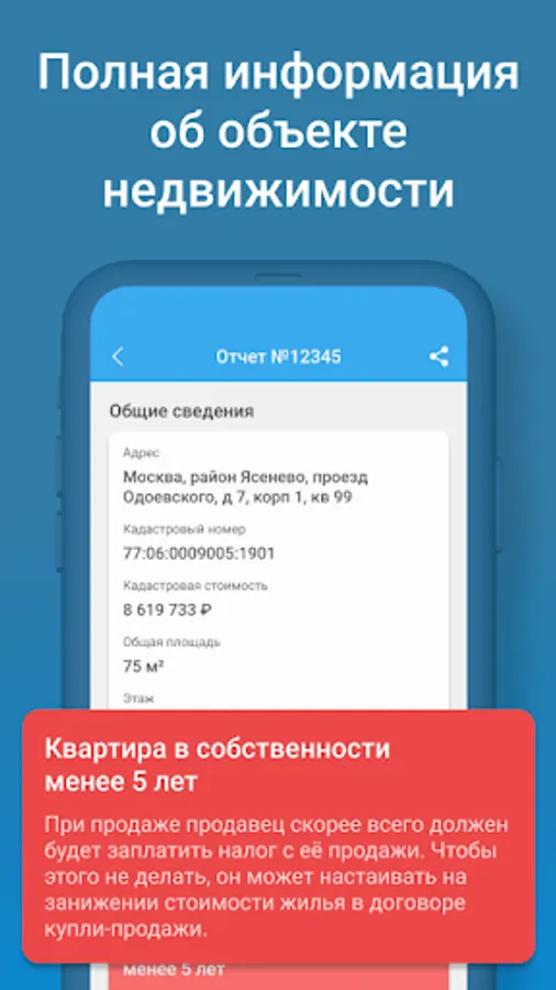 Our information and analytical service aggregates information from a dozen official databases to provide a complete report on the property.