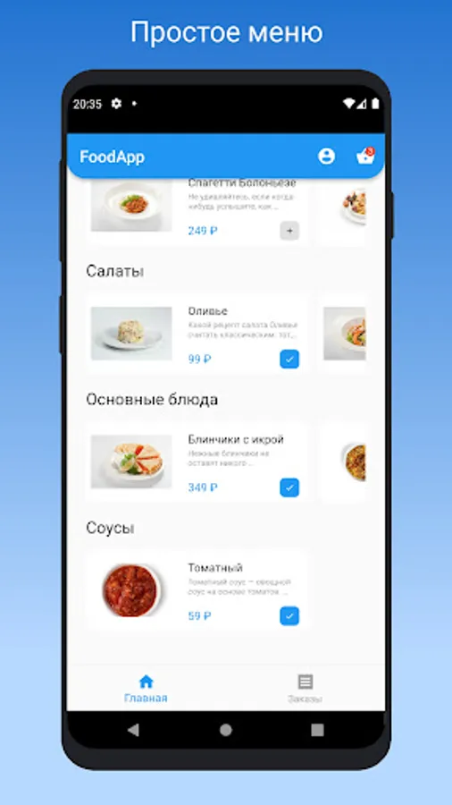 Simple and convenient application for ordering