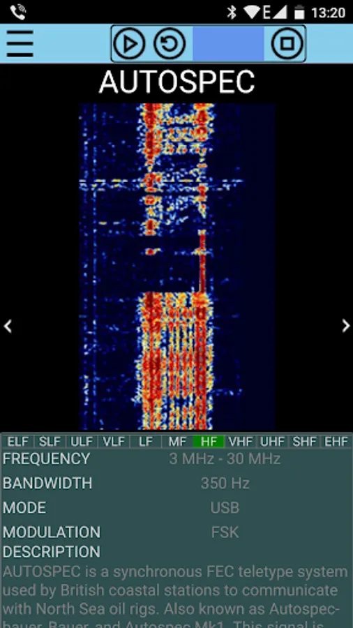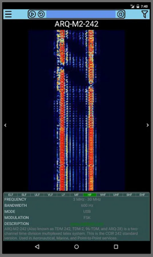 Samples radio signals dataBase is a useful aid for radio listeners: it allows to compare real-time spectra (from SDR waterfall for example) with those found in archives by comparison of the properties (such as frequency, bandwidth, modulation …) and verifying it through a sample image. Facilitating the identification of unknown signals.