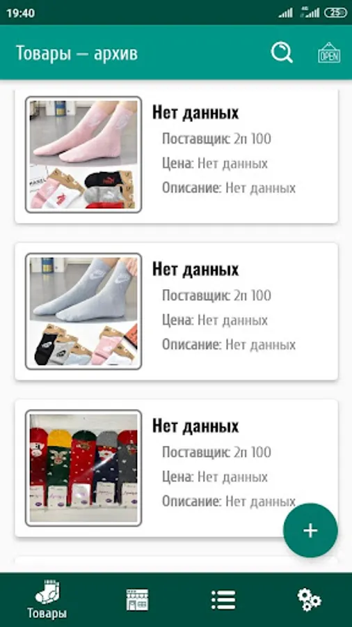 The application allows you to save product data. Such as price, picture, description, supplier. It is also possible to upload the entire database in XLS format to a Google drive.