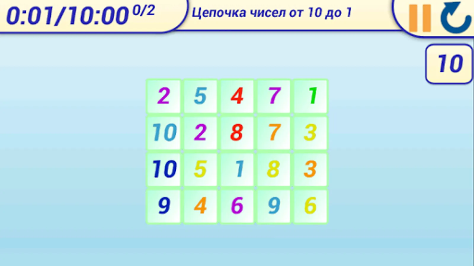 All in the game for more than 30 free levels: select one or more items that have the same sign, make a sequence of numbers from 1 to 10 or 1 to 20, examples of tables of addition, multiplication tables and other tasks.
