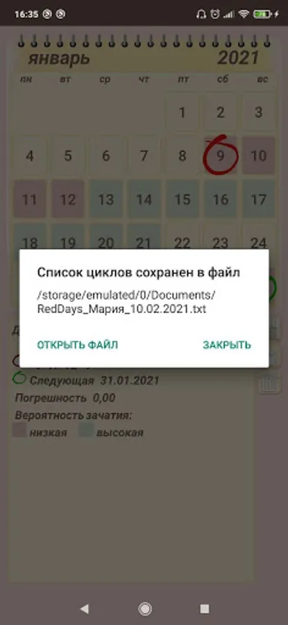 Click on the date in the calendar on the first day of your period, and the program builds a forecast three months ahead (the more data, the more accurate the forecast). The ability to navigate the calendar will not force you to remember all the colored "days".