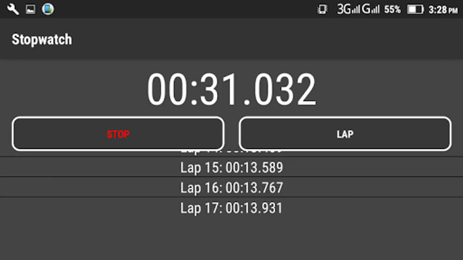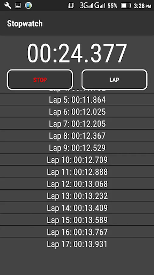 Simple stopwatch from opportunity fixing intermediate time. The stopwatch continues to work when the screen orientation changes. You can use it for sports (running around in circles, running for a while, training and much more). You can use one hand.