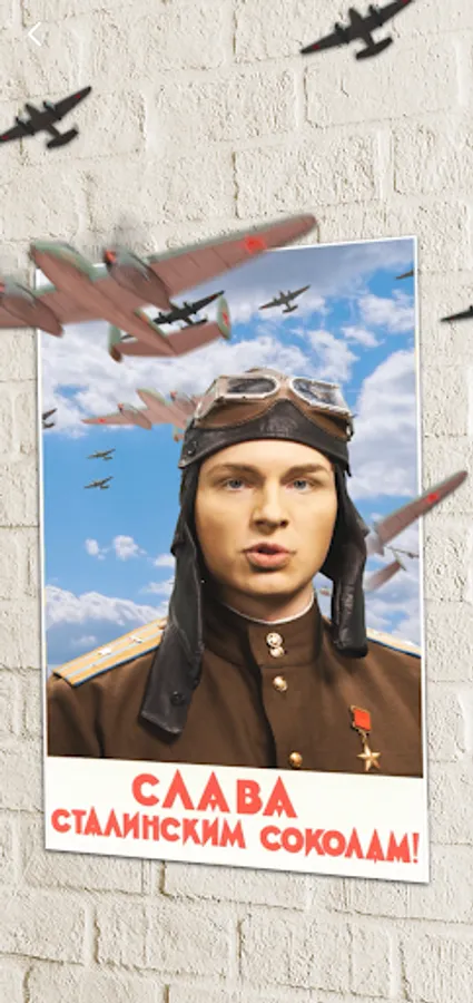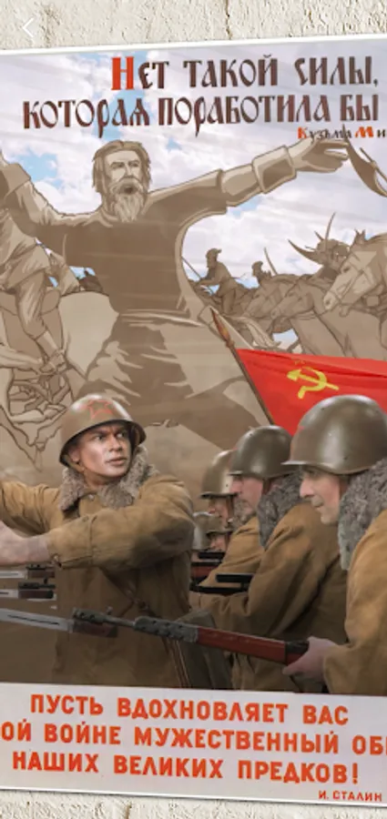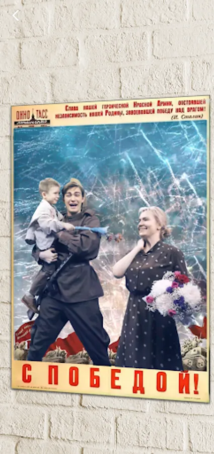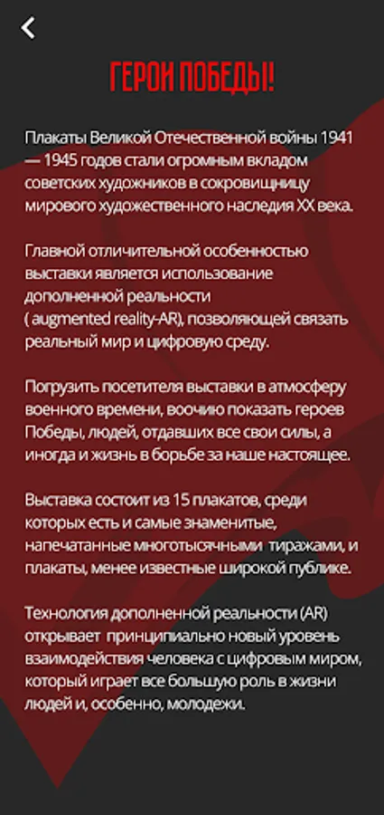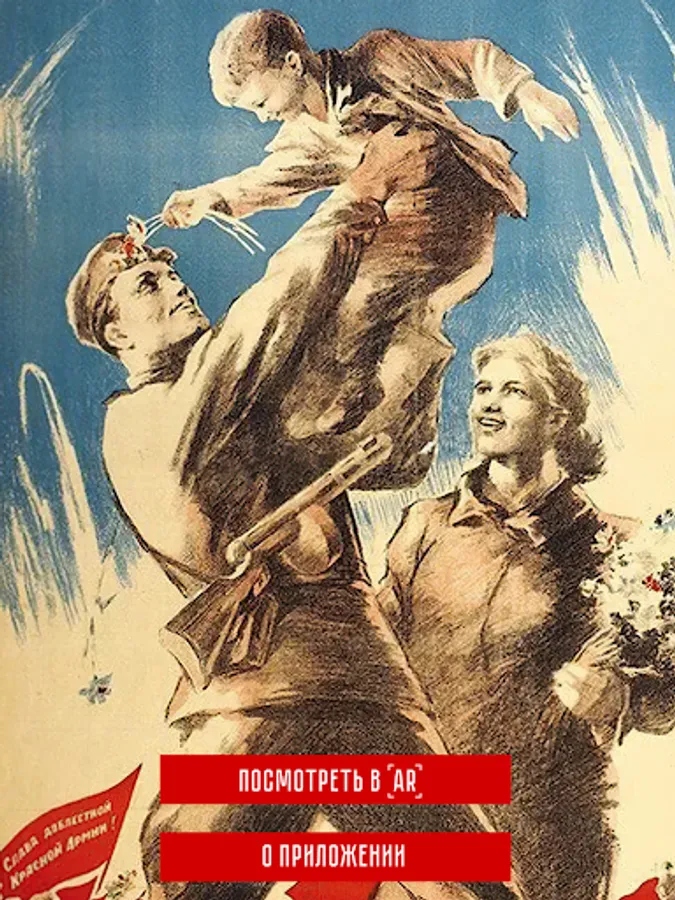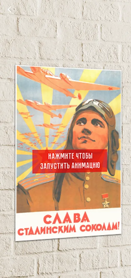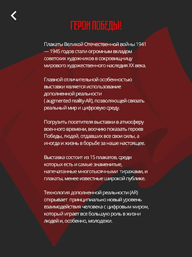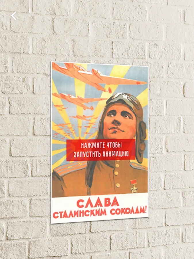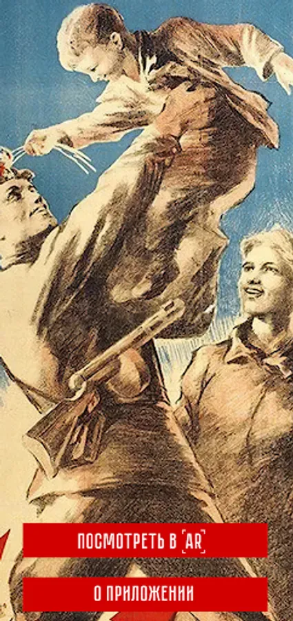 (3) Point your device camera at the posters from the Heroes of Victory exhibition, marked with a special “AR“ icon. If you are using an electronic version of the poster, then point the gadget's camera at the screen of the device on which the poster is displayed. Avoid glare!
