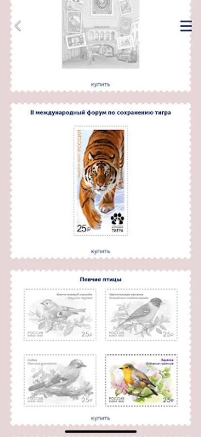The collection of stamps available for viewing in AR mode is located in the My Collection section. Stamps viewed in AR-mode will be bright and colored, the rest will be muted. The virtual stockbook with stamps will be filled in as you view the stamps.