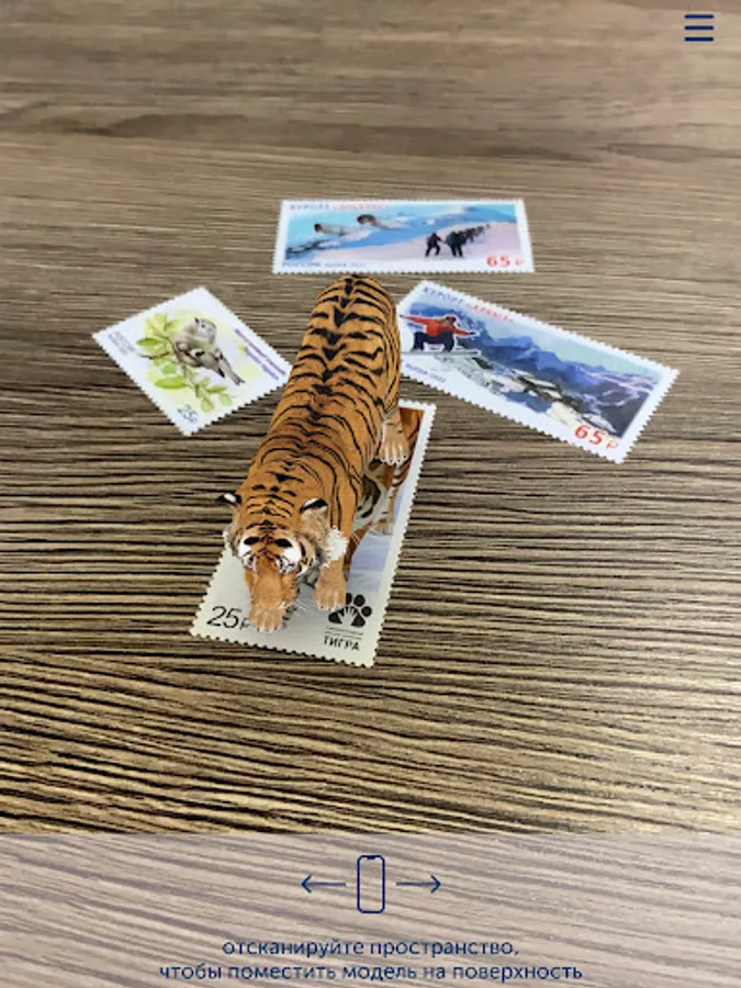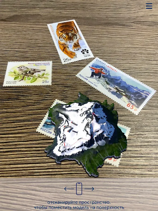 mARka is a unique opportunity to take a fresh look at a traditional postage stamp. Thanks to augmented reality (AR) technology, the miniature will come to life on the screen of the device. You can easily "bring" a tiger or a songbird, watch videos about Russian cities or climb a virtual Elbrus. Enjoy watching!