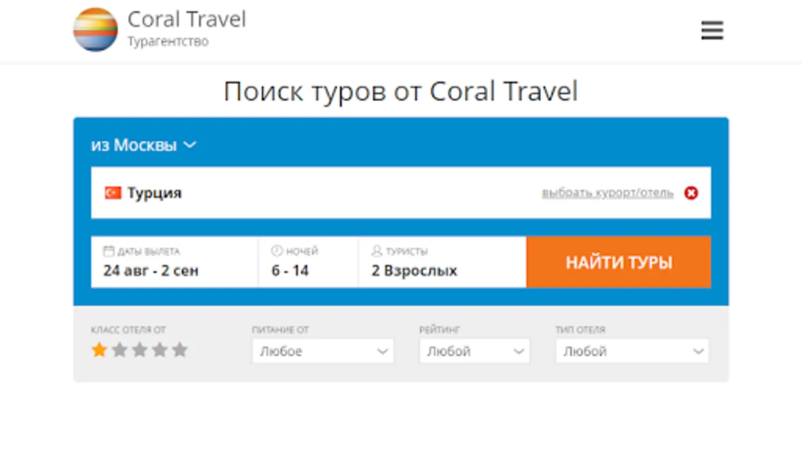 Last minute tours - Coral Travel (Coral Travel) travel agency LLC "Online Group" - a convenient online travel service.
