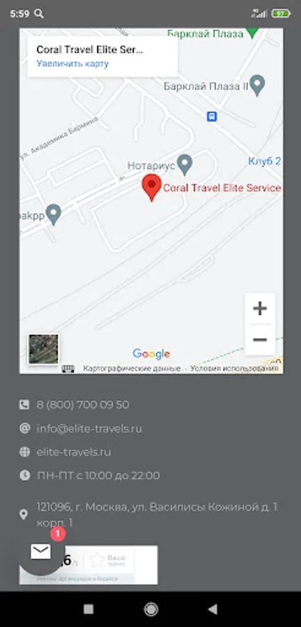 Application "Travel agency Coral Travel Elite Service": Travelservice LLC, Moscow st. Vasilisa Kozhina 1 building 1. tel. 8 800 7000950.