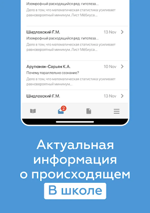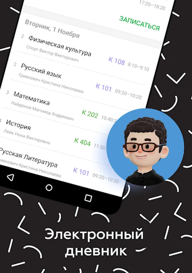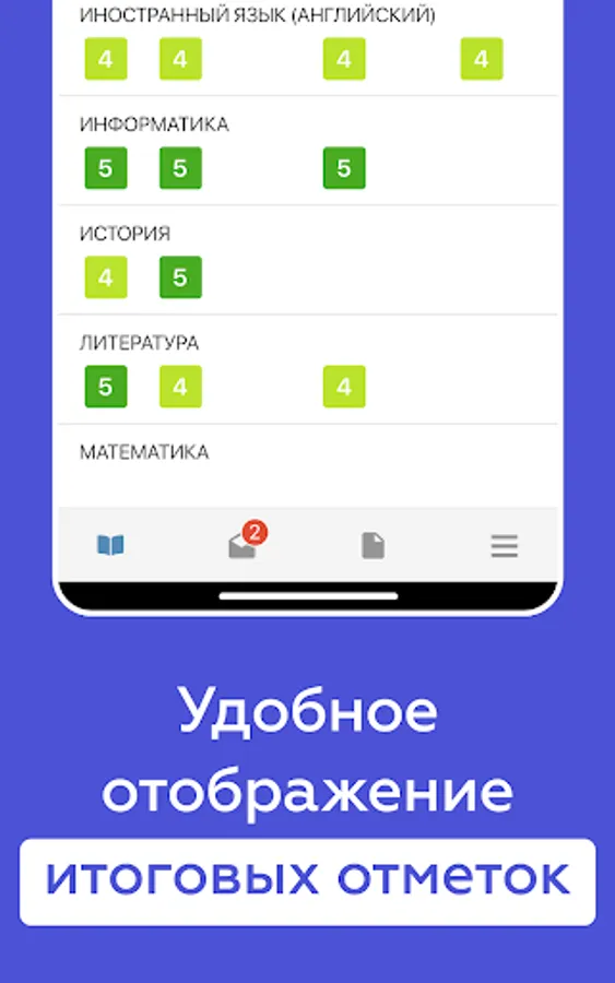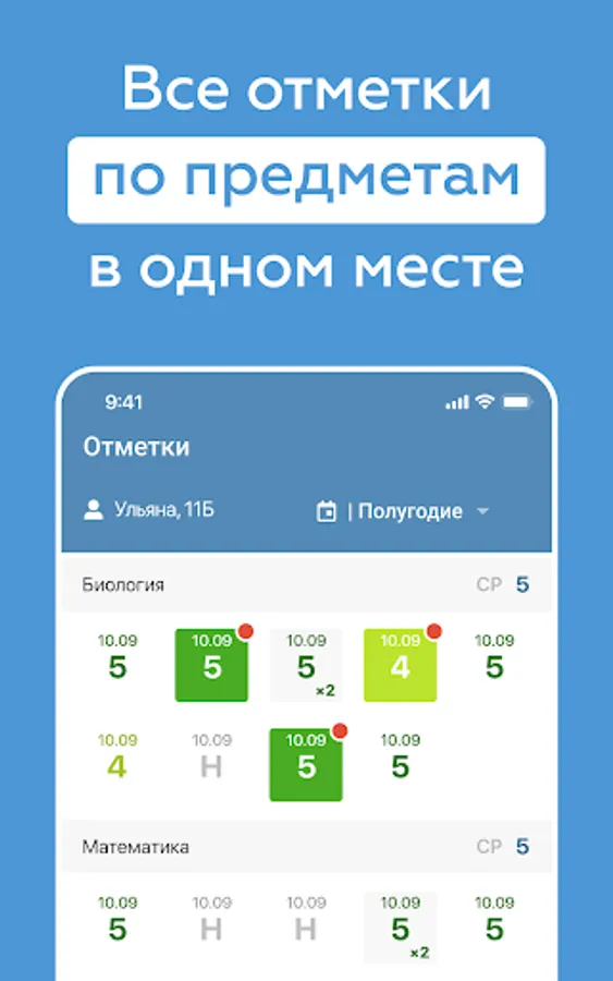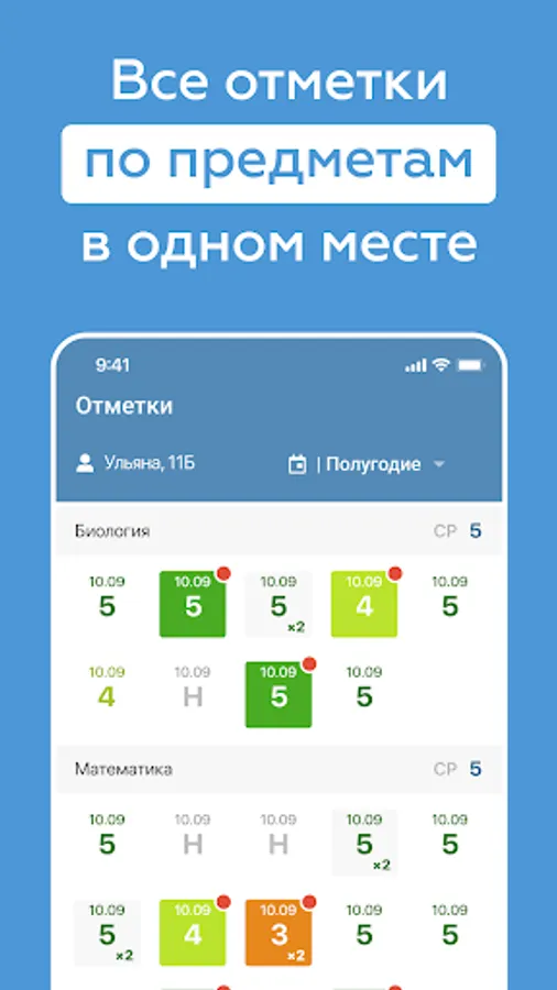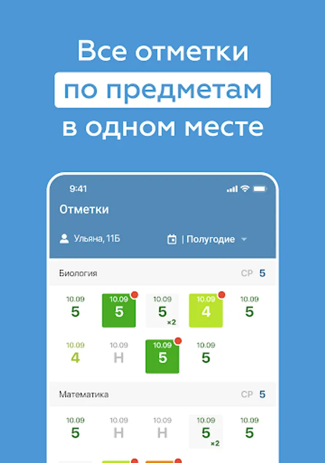 The application allows you to access a diary with information about the grades received, comments on them and homework assignments. It is possible to view the current grades for the academic period with the calculation of the average score in the subject, the results of the intermediate and final certification of the student, as well as the schedule of lessons with the indication of the cabinet and teacher.