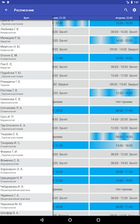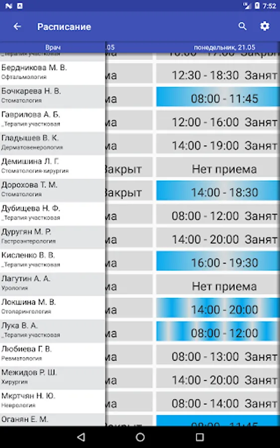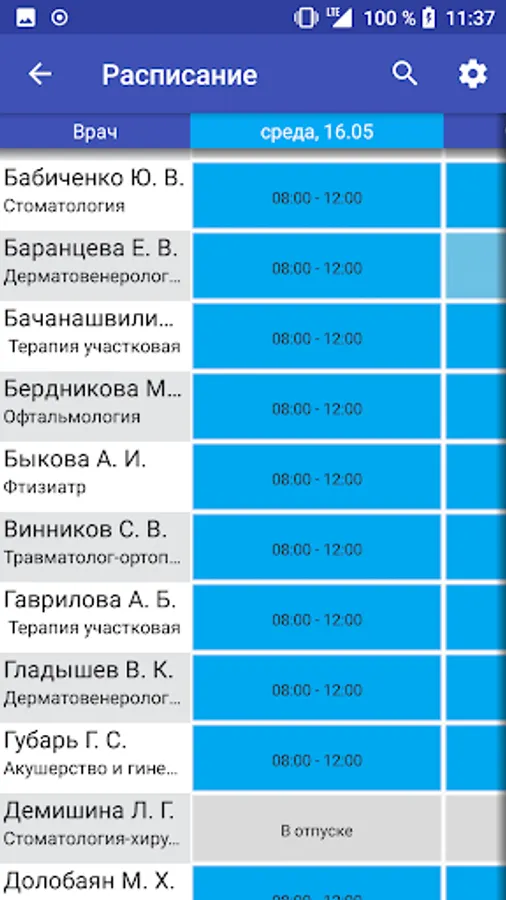 - information about the medical organizations, contact information, schedule of doctors;