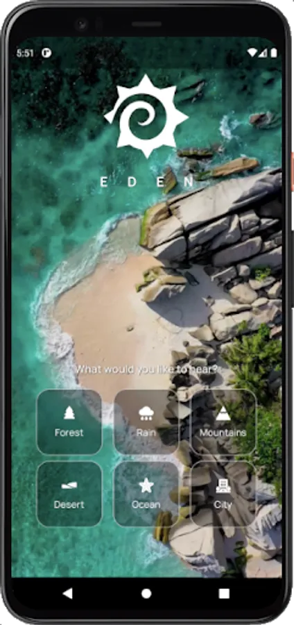 * 6 categories with sounds (forest, rain, mountains, desert, ocean, city)