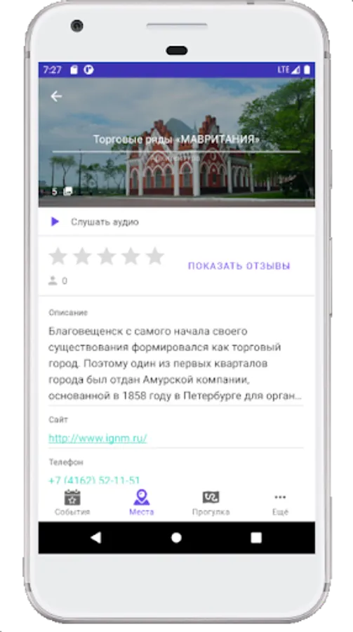 Are you a guest of Blagoveshchensk or a resident of it? This application will be useful to everyone! Take your headphones and go on an excursion to the most interesting places in the city of Blagoveshchensk and the Amur Region, plunge into their history! Don't know how to get to the place - the application will show you on the map and help you build a route. Be the first to know about interesting events taking place in the area!
