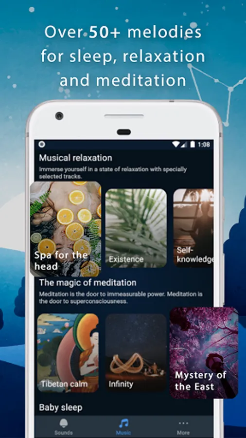 - More than 170 sounds and melodies for relaxation, meditation, sleep.