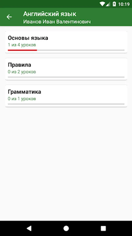 * The lesson ends, only after 100% correct completion of all tasks;