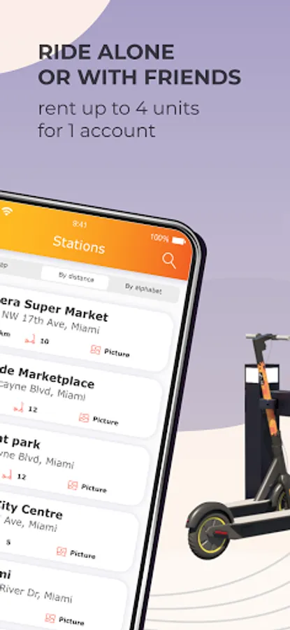 No more worrying about having to find e-scooters yourself. Just choose the closest station on the map