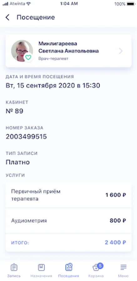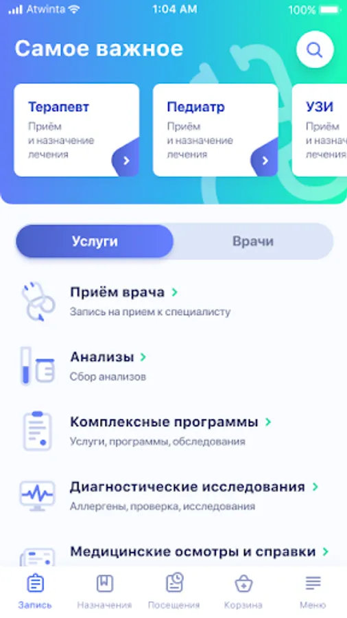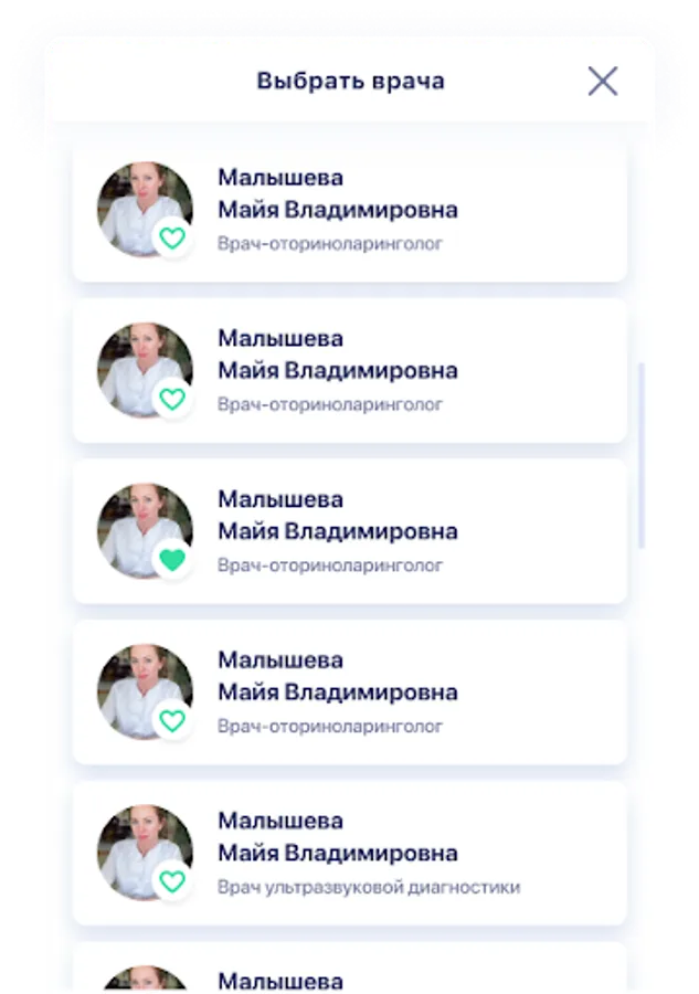 - Online appointment with a choice of a doctor and a convenient time of the visit,
