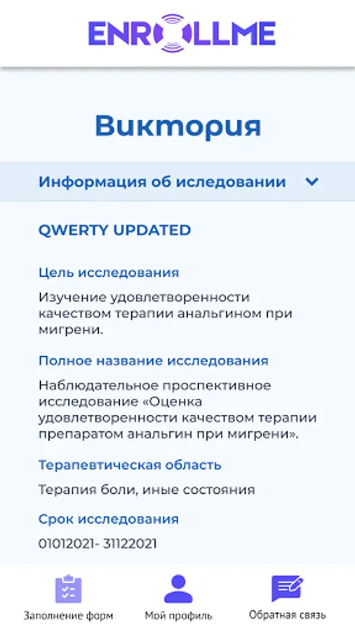Convenient user application for the participation of doctors and patients in multicenter clinical and observational studies in any therapeutic area throughout Russia