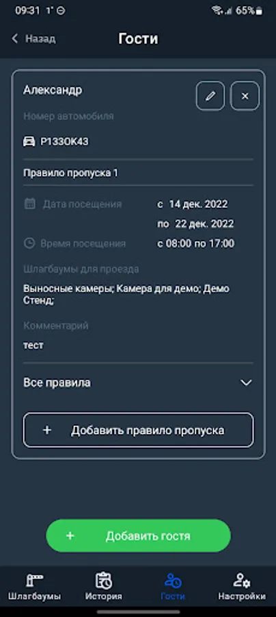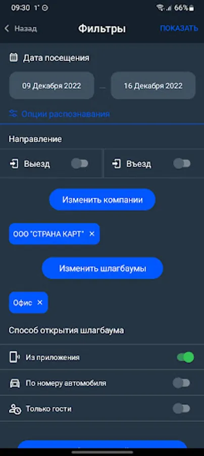The application is designed to work with PAK "Smart barrier"