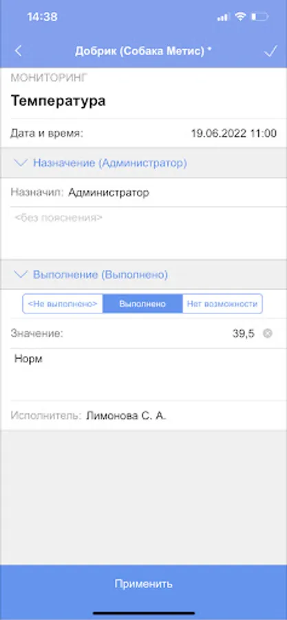 Приложение позволяет просматривать и выполнять назначения пациентам стационара.