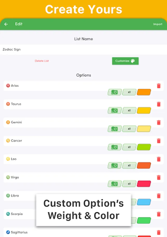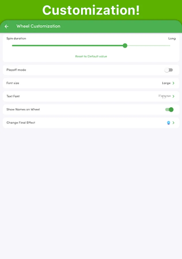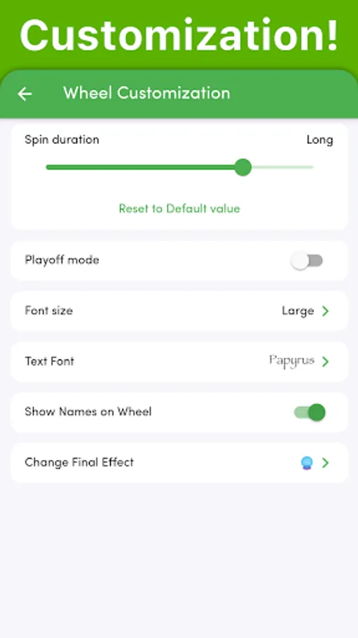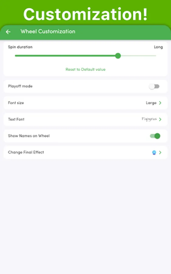 With "Playoff" (or non-repeating) mode you can make a list with names and choose one after another randomly without repetitions (until list ends). This is very useful for giveaways, whishlists, teammates shuffle, etc.