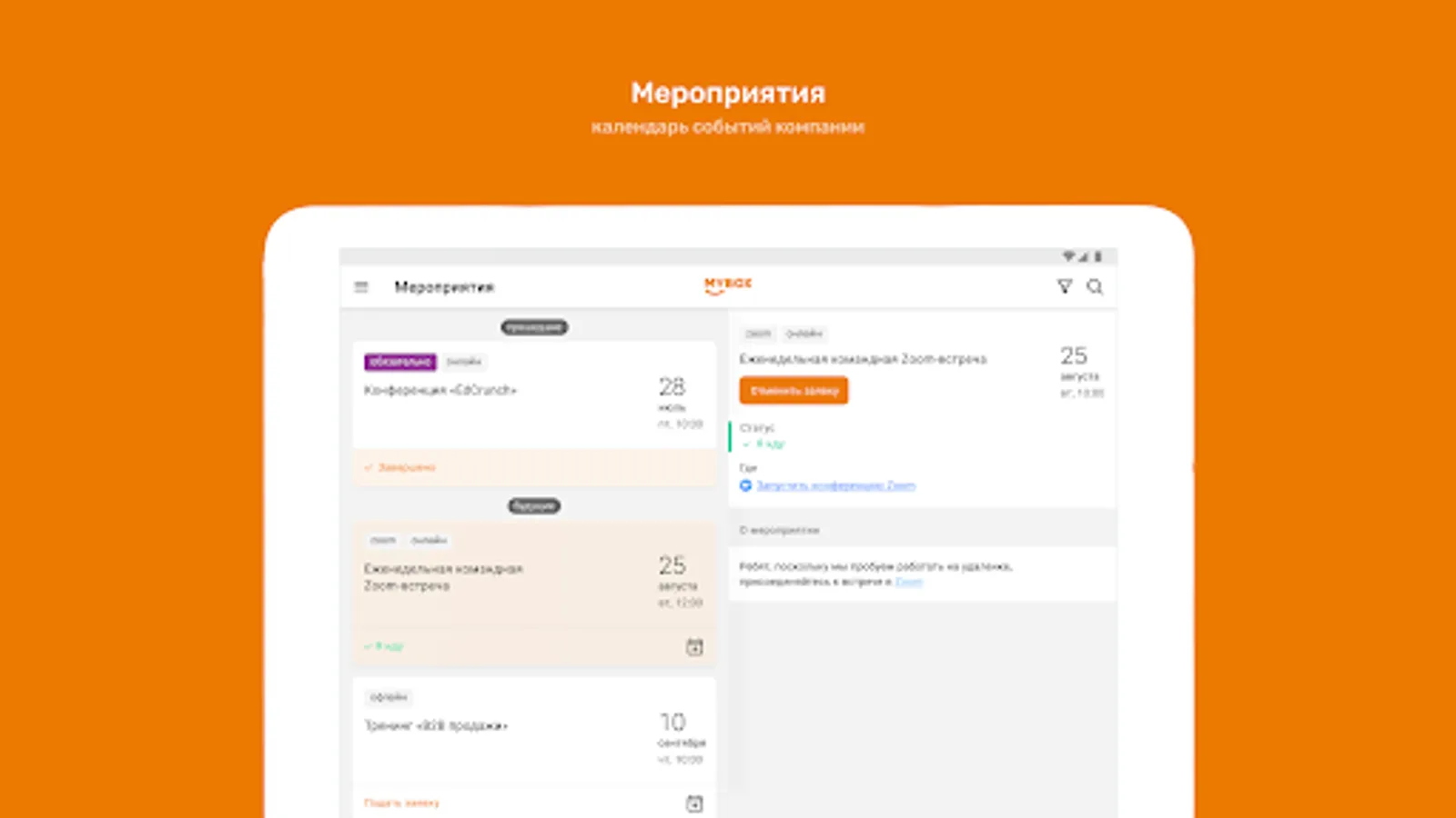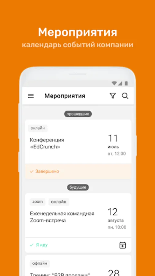 ⁃ Calendar of corporate events with the ability to apply for participation