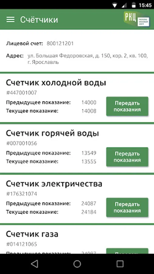 With this application, you can transfer the counters of cold, hot water and electricity in the NAO "Cash Settlement Center" Yaroslavl.