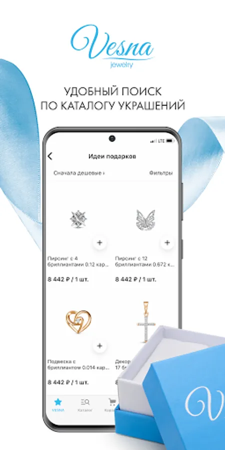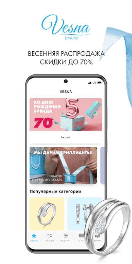 The VESNA online application is a convenient way to choose a piece of jewelry for yourself or as a gift to a loved one. With the VESNA application, you can buy jewelry at the most favorable price, receive gifts, coupons, additional discounts and accumulate bonuses!