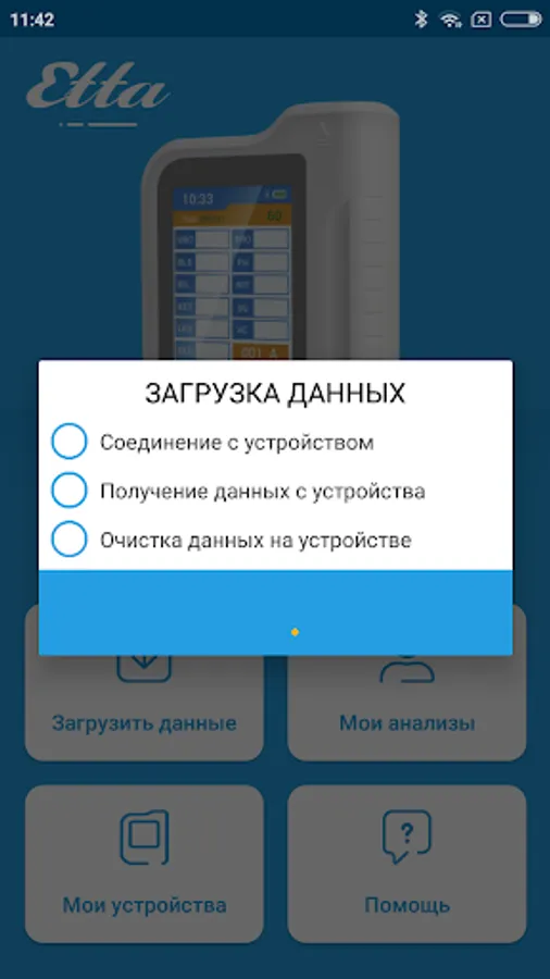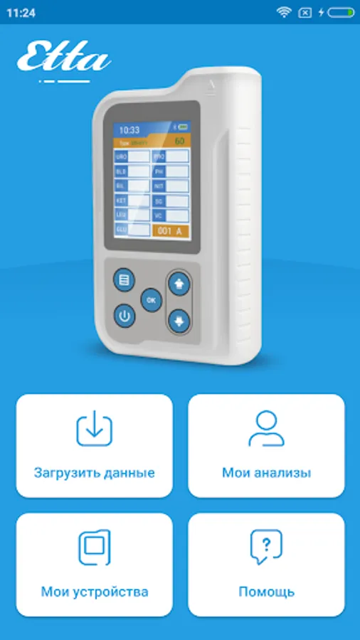 The "Etta" application helps to synchronize your portable urine analyzer ETTA AMP-01 and ETTA PFM-01 urine flow meter with an Android-based smartphone. You can save your analyzes in the application and send them by mail or using instant messengers