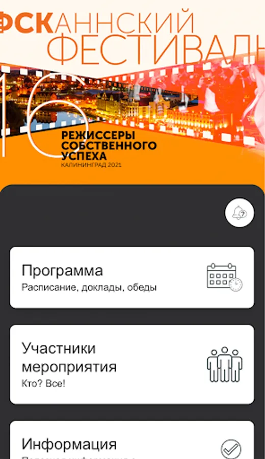 GC FEST 2021 is a free application developed specifically for the participants of the FSCAN FESTIVAL 2021. The application provides the opportunity to receive real-time information about all events of the event, provides feedback to the organizers, and also gives access to various interactive opportunities.