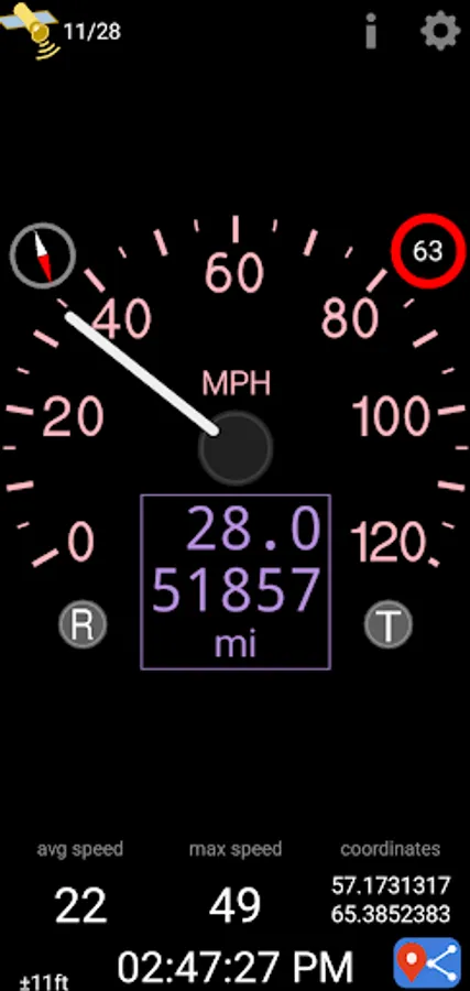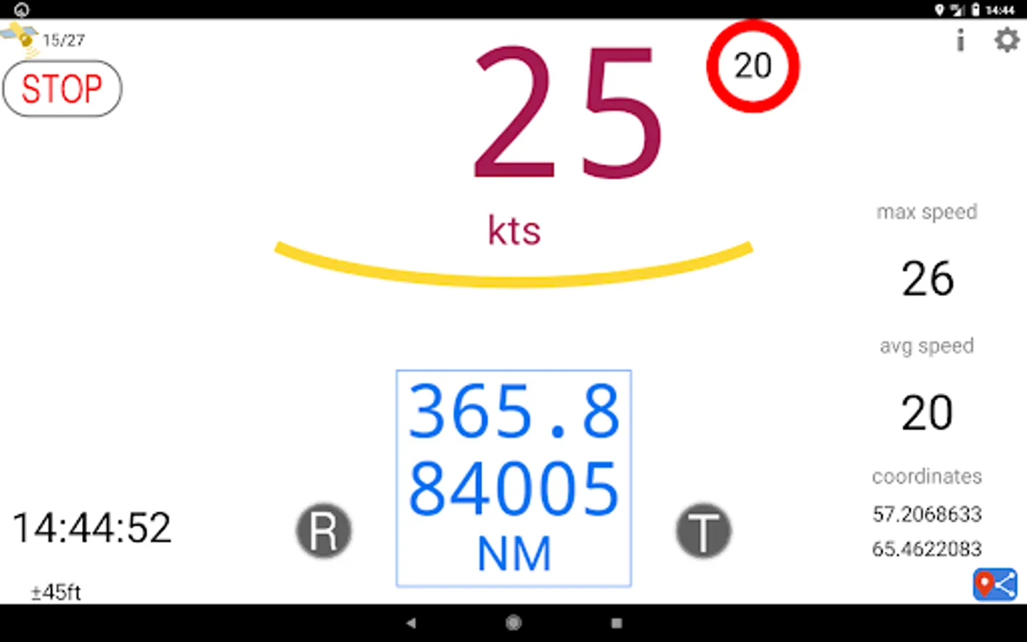 • Units of measurement: km/h - kilometers, MPH - miles, knots - nautical miles