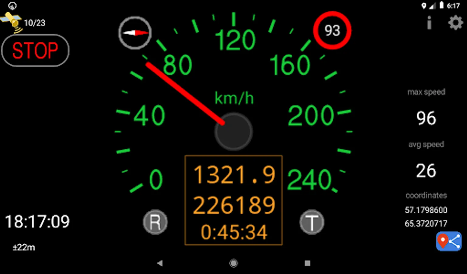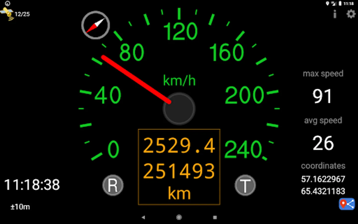 GNSS speedometer pro is an analog speedometer with magnetic compass that uses signals from global navigation satellite systems (GNSS — Global Navigation Satellite System: GLONASS, GPS, etc). The emphasis is on the fastest and most convenient perception of information as on the displays of pilots of Boeing 787, Airbus A350, MC-21. The accuracy of measurements depends on the accuracy of the navigation module of your device, as well as many other factors.
