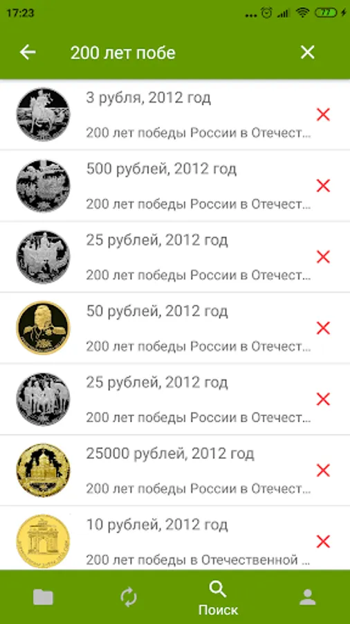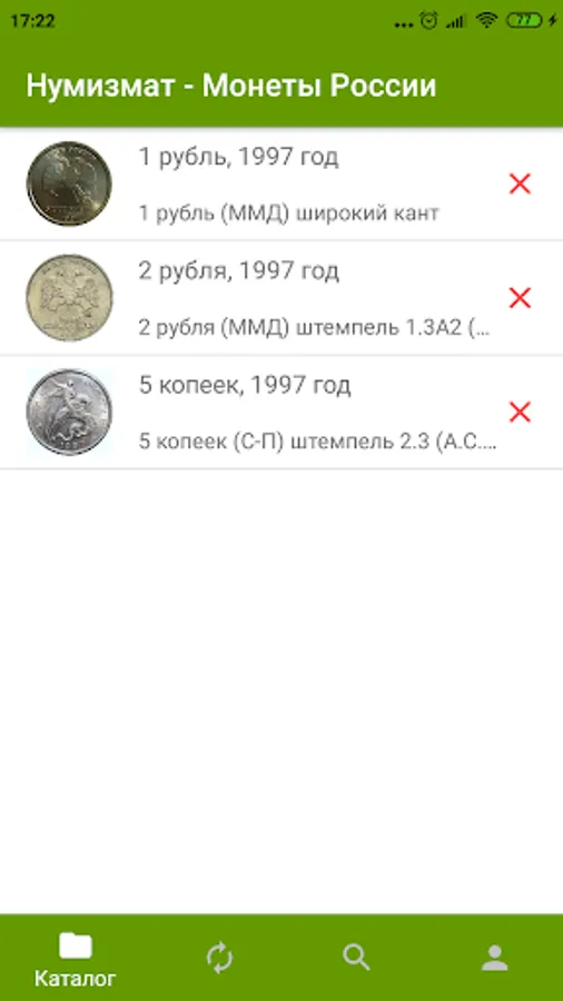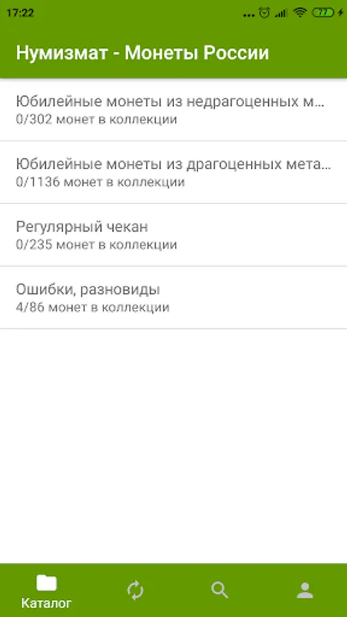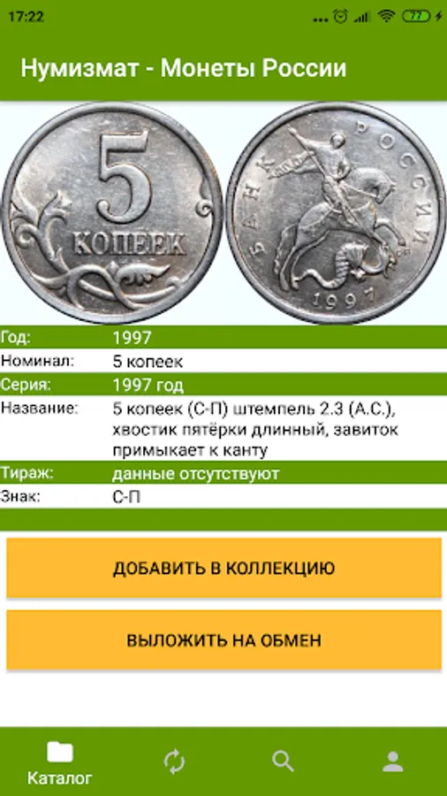 A convenient application with a catalog of Russian jubilee and collection (precious) coins, coins of regular issue (weathering) and various types. For each coin, the basic parameters (including the value of coins) and photographs of obverse and reverse have been added. Now the coin catalog is always at your fingertips. The catalog is regularly updated, coins are added that are only planned for release by the Central Bank of the Russian Federation. Thus, you will not miss a single novelty. And all this without annoying advertising!
