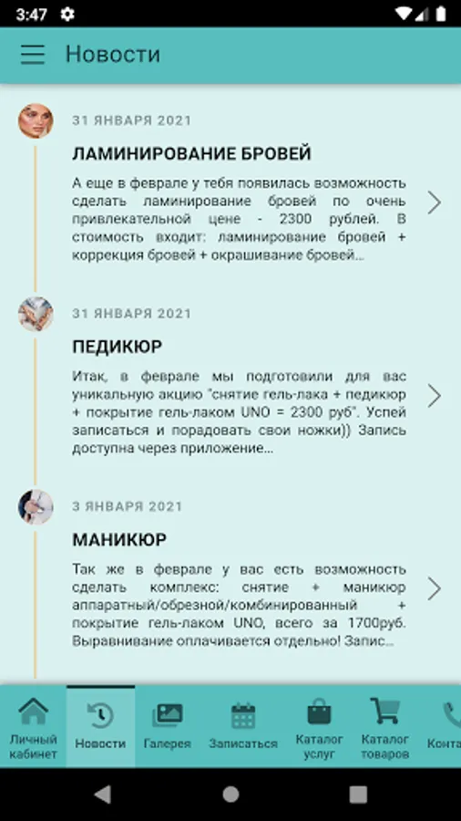 We employ a nail-studio (services of manicure and pedicure), brow-bar (correction and coloring eyebrows), a study of hair removal and cosmetology.