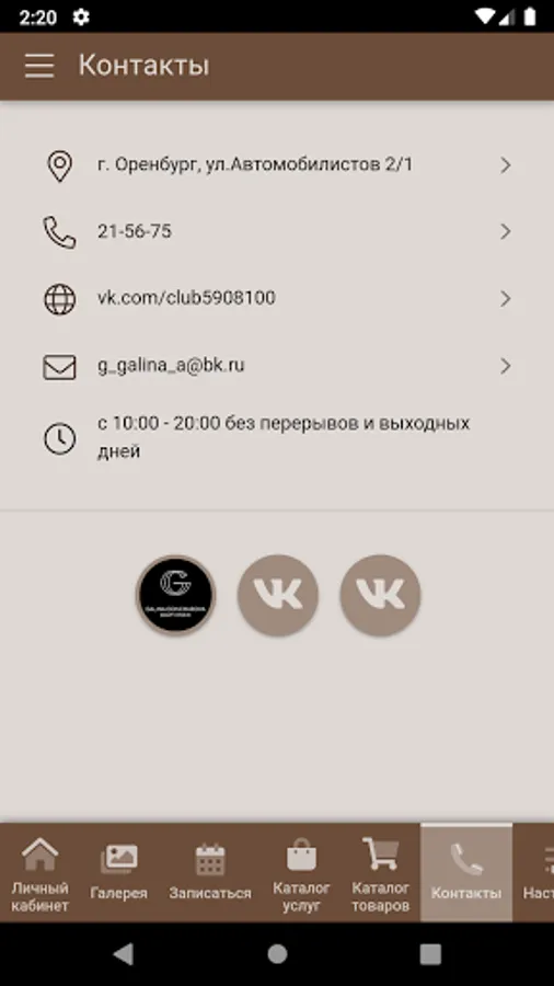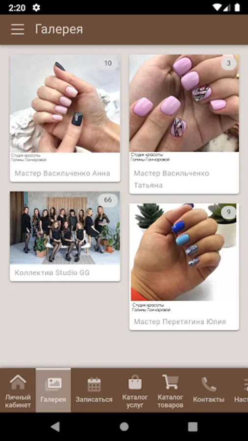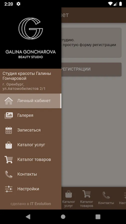 Our mobile application for you - this is your personal cabinet in the beauty salon, you can enroll in our studio mode online (at any time you like), learn how you accumulated points, getting a discount card, you will be informed studio (the news / share). You can receive information on the balance of funds on deposit. Beauty Studio Galina Goncharova - guarantee a high level of service as all our masters undergo mandatory training.
