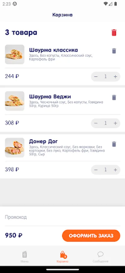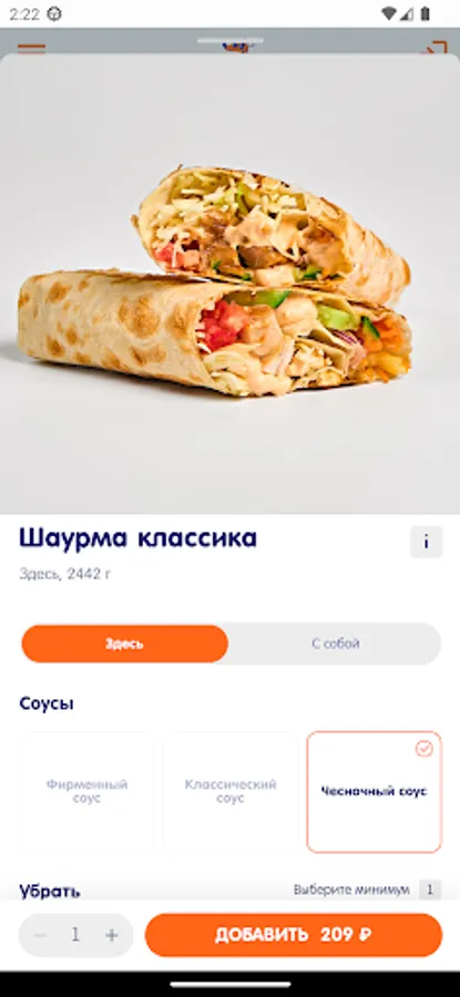 Shawarma for 99 rubles for the first order through the application!