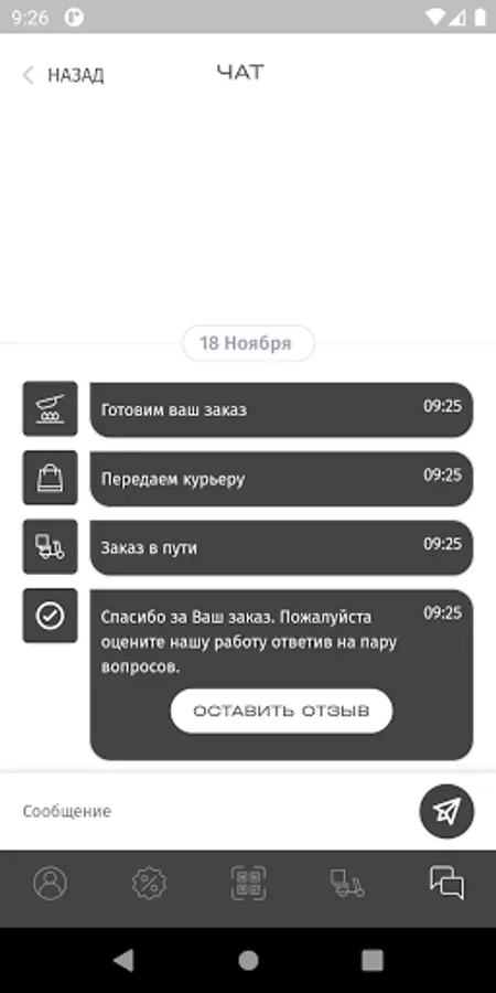 Always in your smartphone. Check the number of bonuses, learn about promotions and offers, track delivery status from your favorite restaurants!