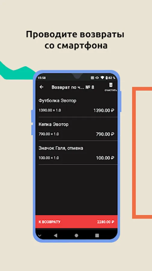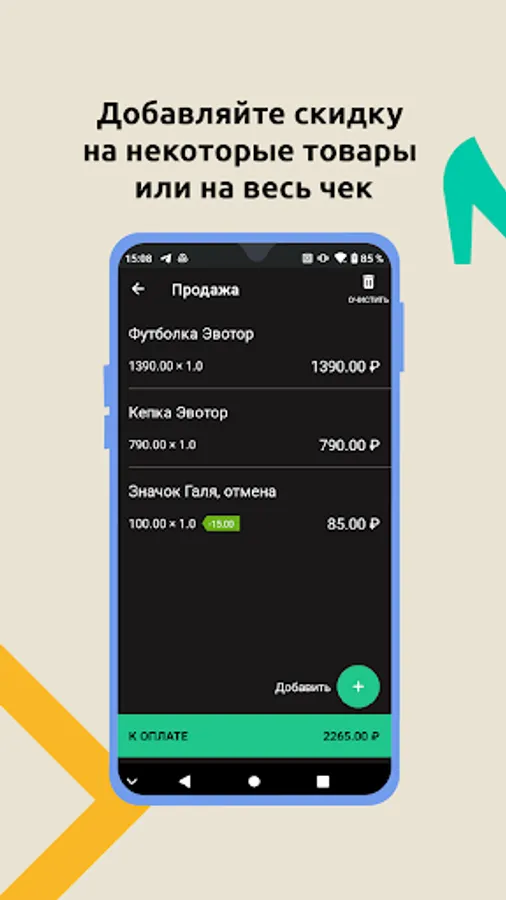 ★ You can save on equipment: you don't have to buy a cash register, a scanner and a payment terminal for each employee. The application can be installed on any number of smartphones.